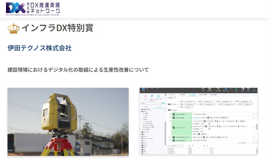 埼玉県が主催する「第3回埼玉DX大賞」において、厳正な審査の結果、当社は栄誉ある「インフラDX特別賞」を受賞いたしました。